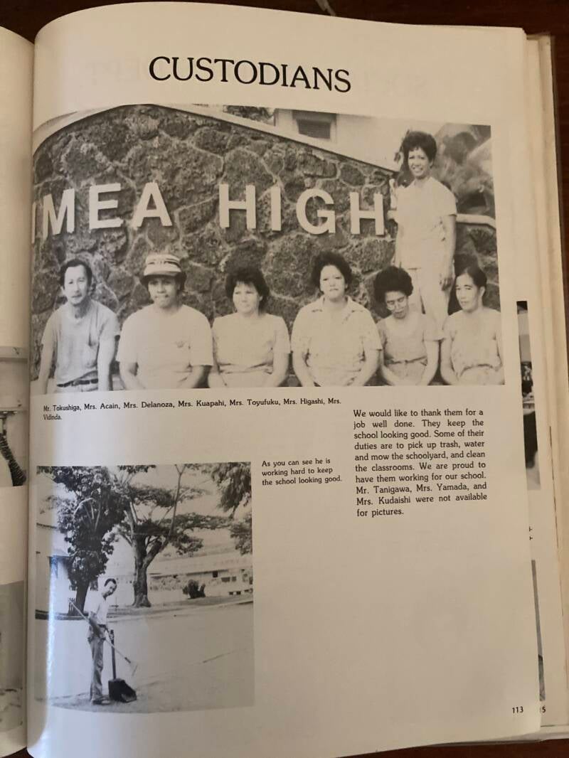 Waimea High School's custidio dept. We are transferring you there. Your pay will be the same though. Gung Ho, 1986.